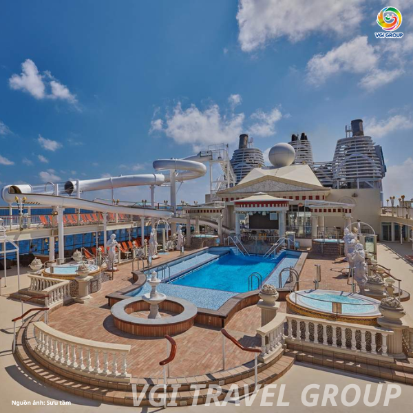 - Công viên nước trên biển: Khu vui chơi trên đại dương dành cho gia đình và người yêu thích mạo hiểm. Bơi lội tại hồ bơi Parthenon Pool có bể sục Jacuzzi hiện đại, trải nghiệm đường trượt nước ngoạn mục CAESAR, tắm nắng ngoài trời tại Sun Deck…