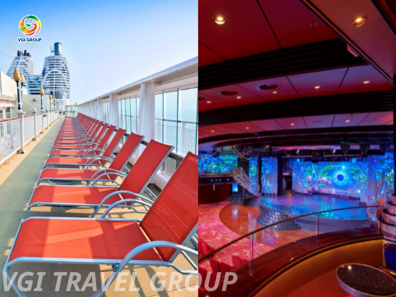 - Các dịch vụ trải nghiệm trên du thuyền: xem show diễn tại nhà hát Zodiac Theater (theo lịch trình), Vui chơi tại Công viên nước, bể bơi Jacuzzi, khu hoạt động thể thao SportPlex, GYM, Jogging Track, Sun Deck…