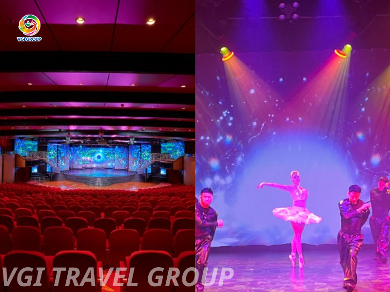 - Thưởng thức các Show biểu diễn Nghệ thuật tại Nhà Hát Zodiac Theatre (Theo khung giờ): Nhà hát hiện đại với thiết kế sang trọng, sức chứa lớn, trang bị âm thanh – ánh sáng tiên tiến. Đây là nơi diễn ra các buổi biểu diễn nghệ thuật đa dạng: ca múa nhạc, xiếc, ảo thuật và các show đặc sắc theo chủ đề, mang đến cho du khách trải nghiệm giải trí đẳng cấp giữa lòng đại dương (Mỗi tối có Show biểu diễn riêng theo lịch).