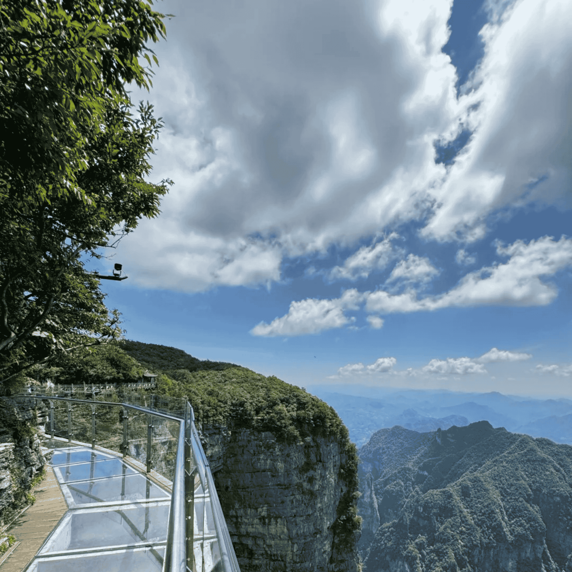 - Trải nghiệm Sạn Đạo Kính (Cầu kính - con đường gác kính trên vách đá), con đường làm từ những tấm kính cường lực trong suốt, dày hơn 6cm. Con đường men theo vách núi dựng đứng, Skywalk đã trở thành một trong những điểm thu hút khách du lịch hấp dẫn nhất tại Trương Gia Giới.