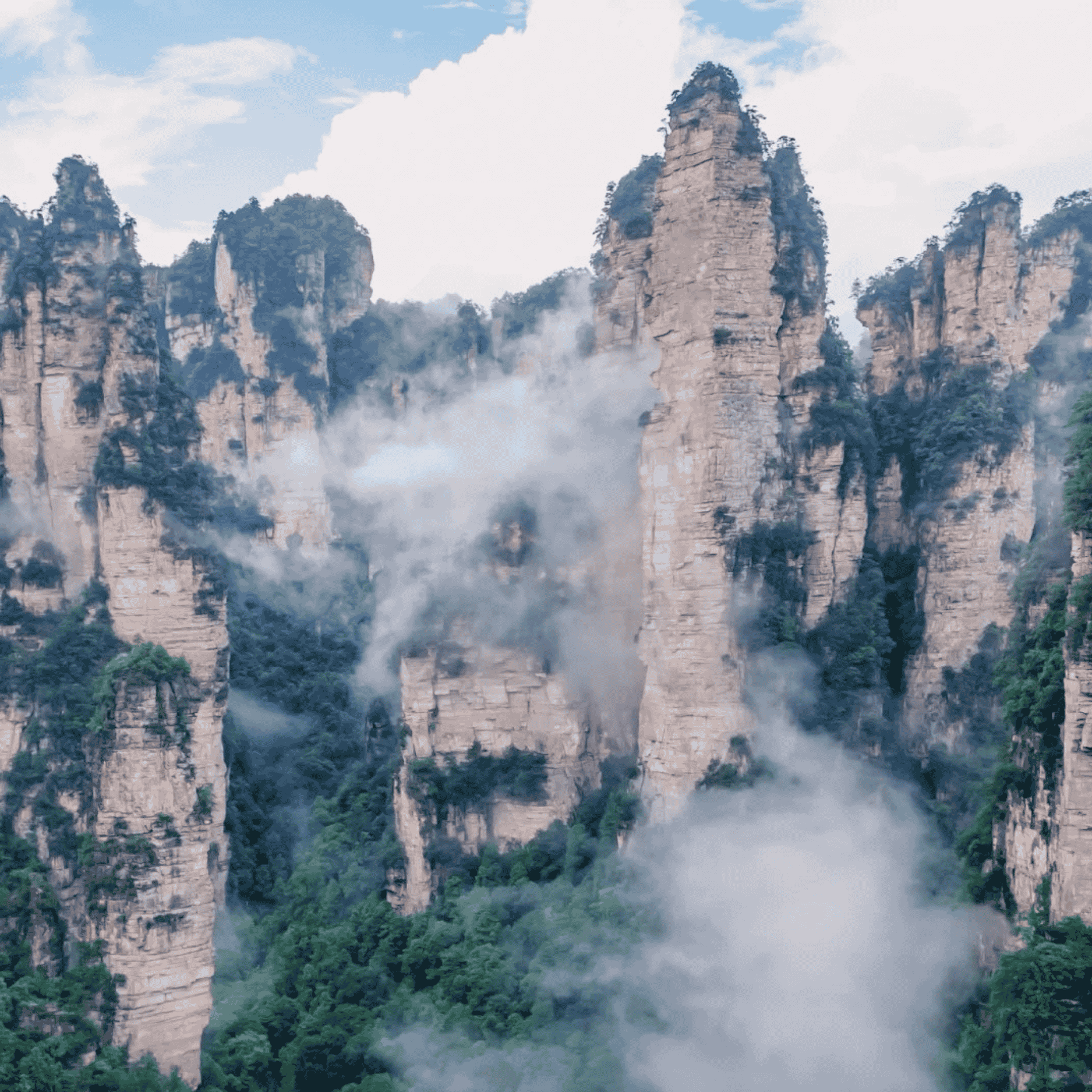 - Thiên Môn Sơn: Quý khách sẽ đi theo con đường bao quanh những đỉnh núi, xuyên từ đỉnh núi này sang đỉnh núi khác. Một bên là núi, một bên là mây, thỉnh thoảng có thêm những lá bùa may mắn màu đỏ rực rỡ sẽ khiến quý khách cảm thấy lạc như lạc vào chốn bồng lai tiên cảnh, như đang đi trên 9 tầng mây của thiên đường. Ngọn núi nổi tiếng với con đường trên trời và hệ thống cáp treo dài hơn 7,4km tại Thiên Môn, được tuyên bố trong các ấn phẩm du lịch là “cáp treo dài nhất tại một ngọn núi cao nhất trên thế giới”. Quý khách trải nghiệm cáp treo 2 chiều.
