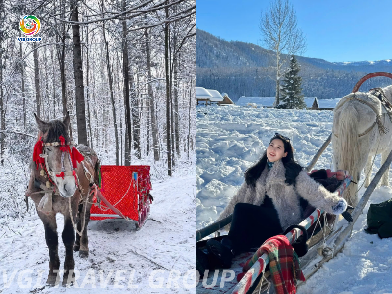 - Trải nghiệm xe ngựa kéo tuyết– phương tiện giao thông đặc trưng của vùng Đông Bắc.